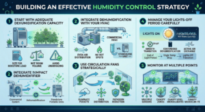 The good news is that humidity control isn’t mysterious. It responds to clear principles, and once you understand what’s actually driving moisture levels in your facility (and why those levels need to be different at different stages of growth) managing it becomes much more systematic than it might initially seem.